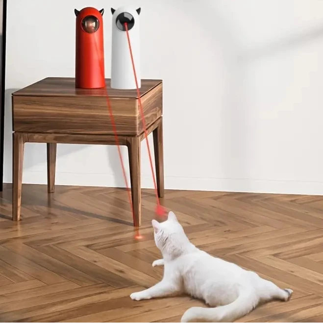 Heeft jouw kat energie te veel of verveelt hij zich snel? De Laser 'n Chase katten speeltje is dé oplossing. Het slimme roterende ontwerp projecteert een infrarode laser in verschillende richtingen, waardoor je kat urenlang vermaak heeft – zonder dat jij iets hoeft te doen!